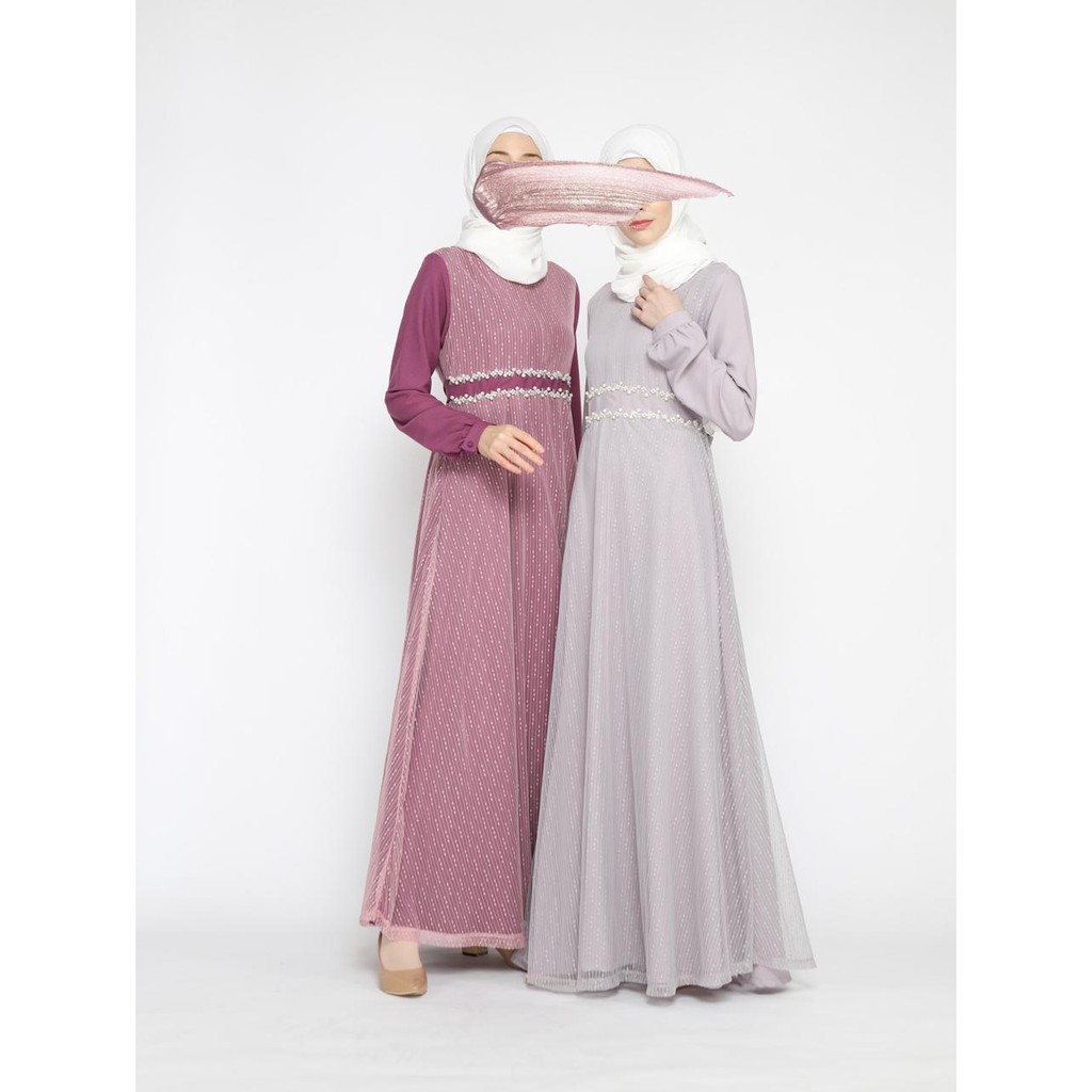 Baju gamis satu ini bisa disebut dengan gaun tapi tetap menutup aurat dan terlihat cantik elegan.